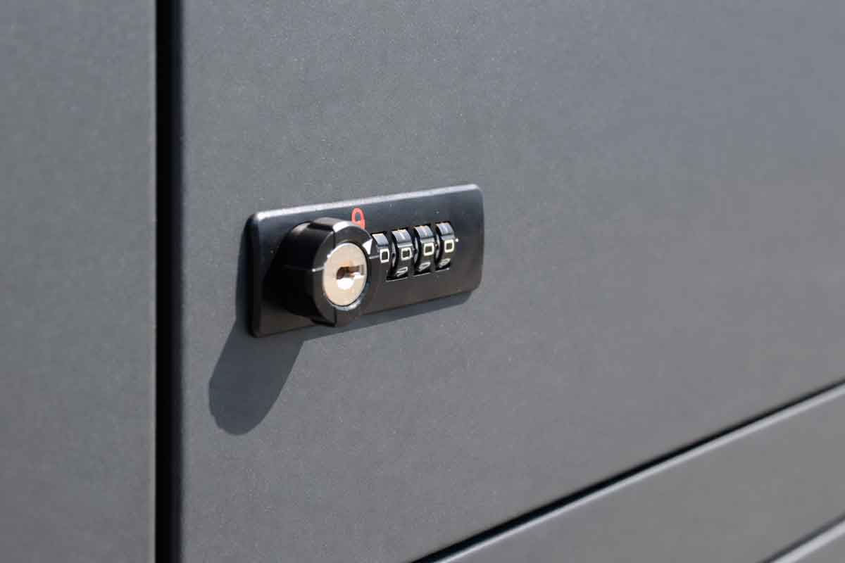 De serie, cada compartimento está equipado con una cerradura de seguridad de tres puntos, garantizando un alto nivel de protección frente a accesos no autorizados.