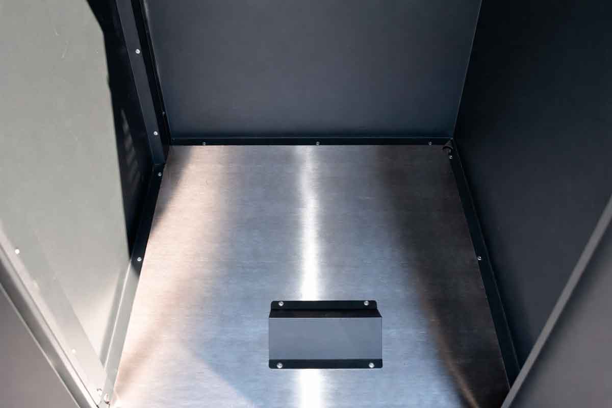 En la versión sin carga eléctrica, el box mantiene todas las características de seguridad y resistencia, funcionando exclusivamente como solución de almacenamiento seguro.