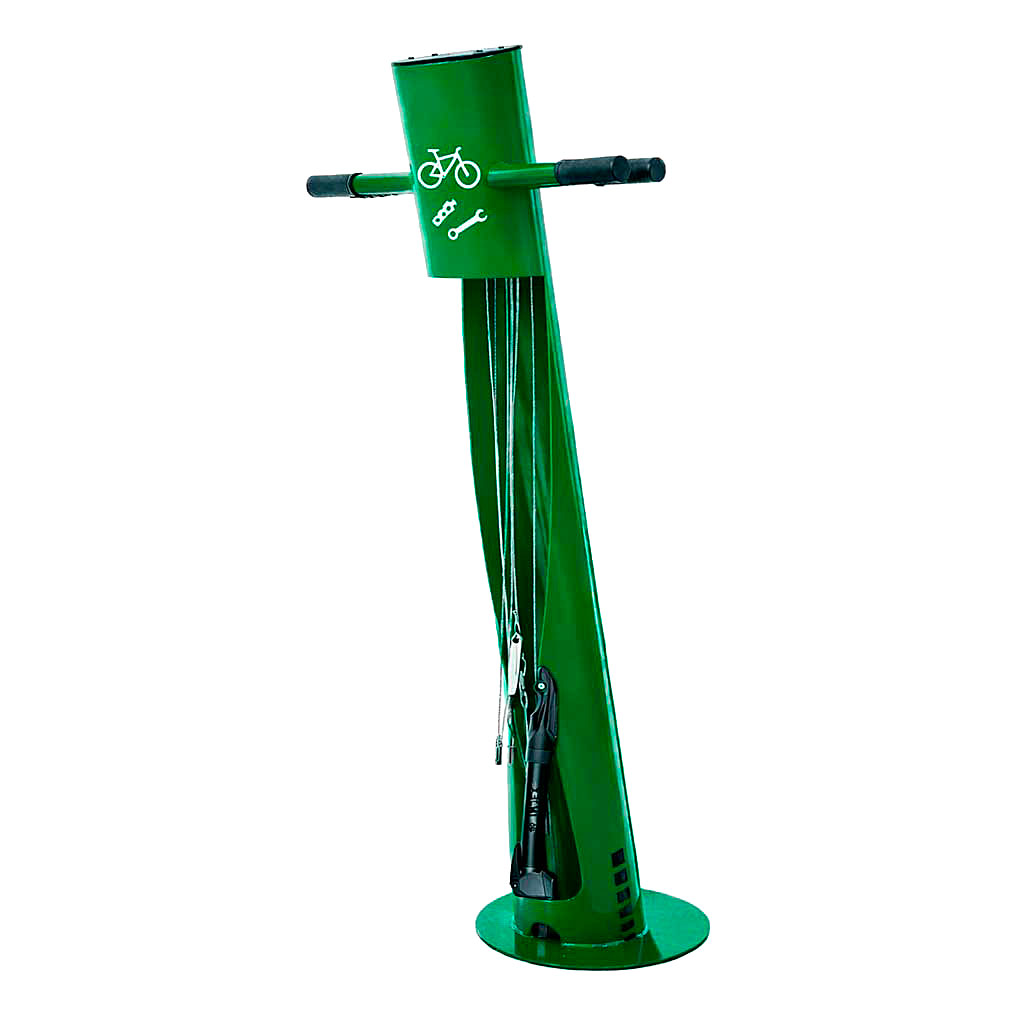 La estación CES-BC-2L incluye herramientas esenciales para el mantenimiento básico de todo tipo de bicicletas. Sus herramientas van sujetas mediante cables de acero inoxidable, diseñados para soportar el uso intensivo en instalaciones públicas.