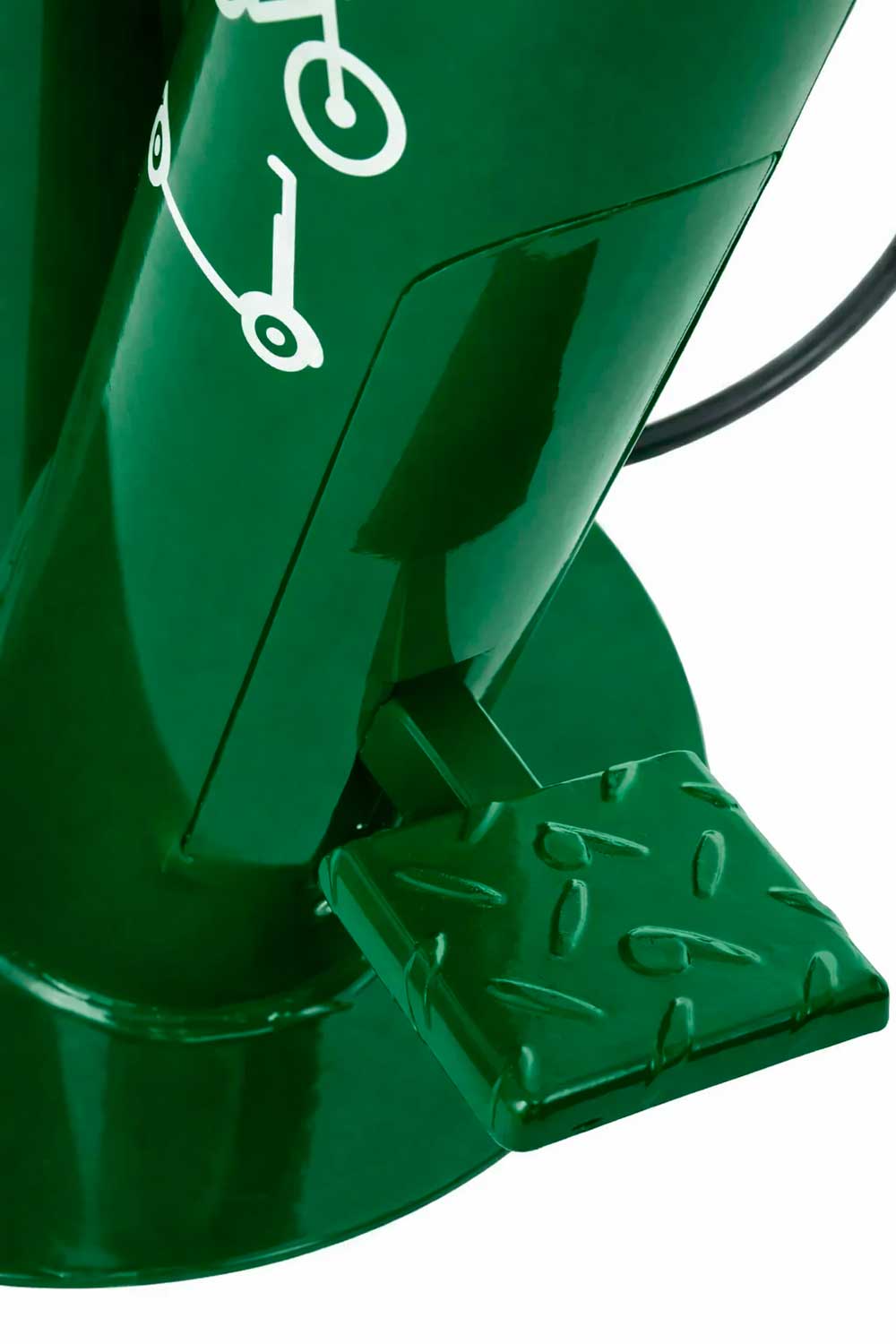 Fabricada en chapa galvanizada con recubrimiento en polvo, la estación ofrece una estructura resistente a la intemperie, ideal para su instalación en entornos urbanos, carriles bici, parques, empresas, campus universitarios y proyectos de movilidad sostenible.