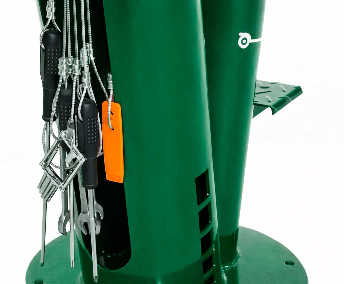 La estación CES-BP-2L incluye herramientas esenciales para el mantenimiento básico de todo tipo de bicicletas. Sus herramientas van sujetas mediante cables de acero inoxidable, diseñados para soportar el uso intensivo en instalaciones públicas.