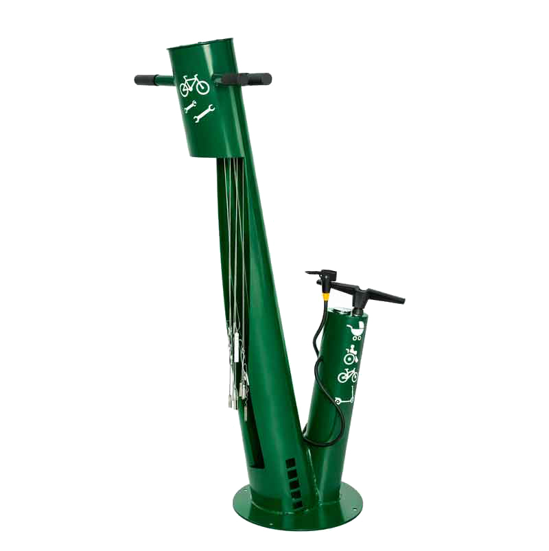 La Estación de Servicio Series CES-BM es una solución cómoda, funcional y robusta para el mantenimiento y reparación de bicicletas en espacios públicos y privados. Diseñada para ofrecer un servicio rápido y eficiente a los ciclistas, incorpora un completo kit de herramientas y una bomba de inflado fija con manómetro integrada.