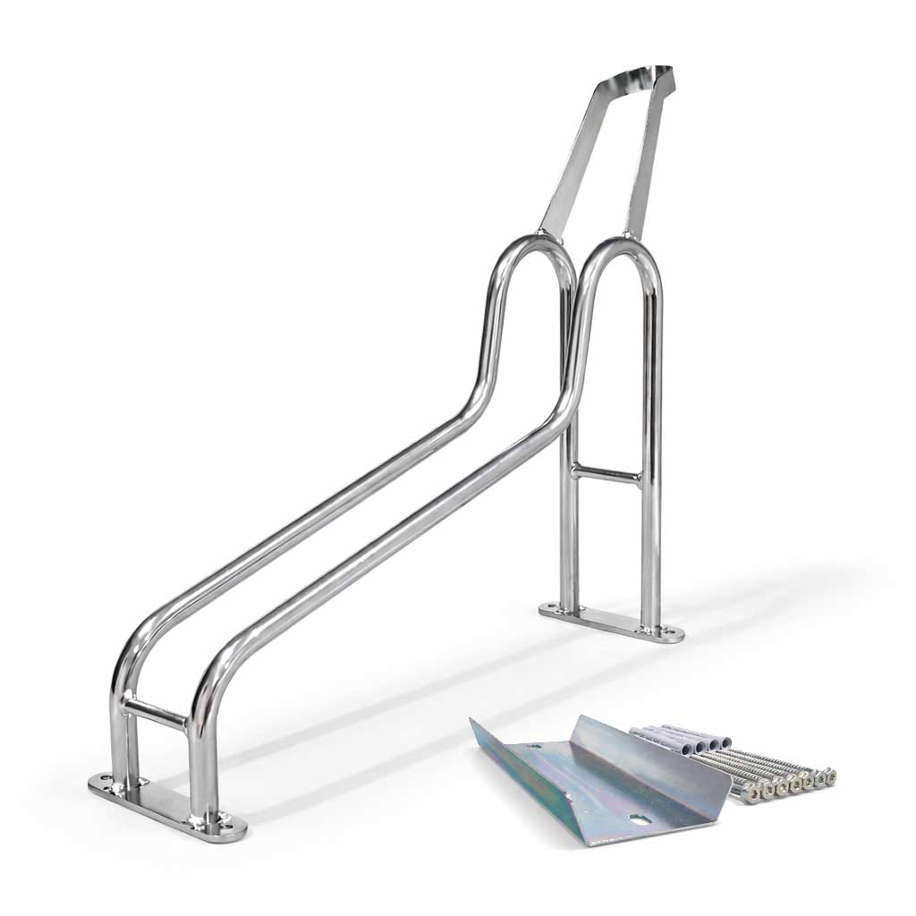 Incluye el soporte superior (rueda delantera), el soporte inferior para la rueda trasera (“zócalo”) y la tornillería/herrajes de montaje.